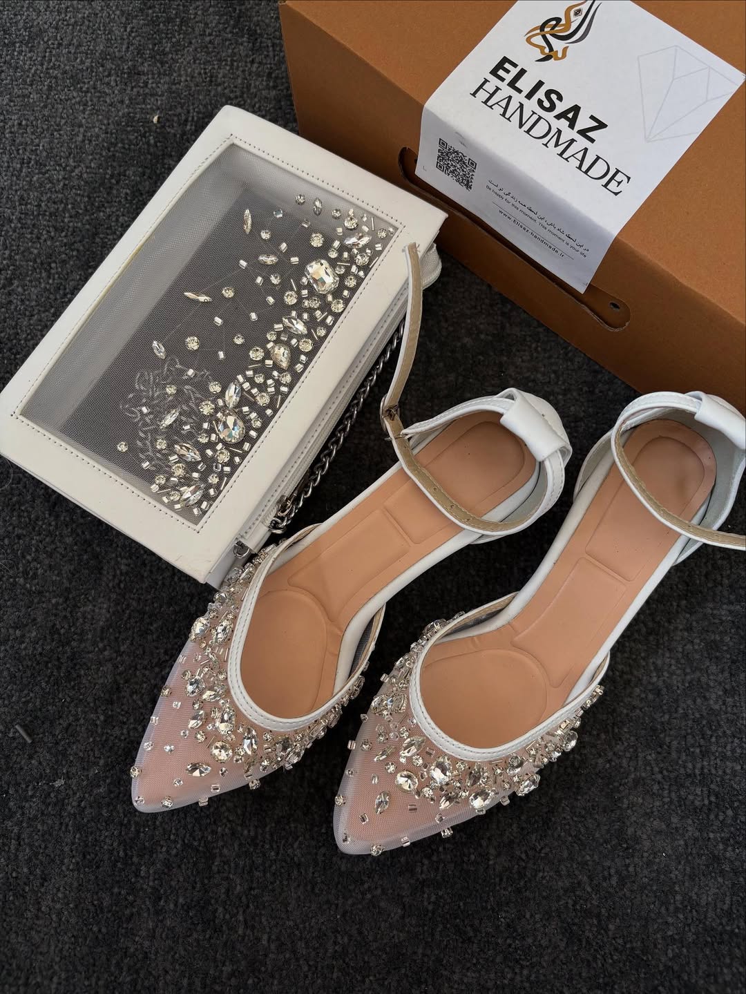 تمام متریال دوخته شده و سنگها اتریشی کفش قابل احرا در پاشنهای تخت سه پنج و هفت و ۱۰ سانت هم پهن هم باریک کیف ست کفش دقیقا هم جنس و مدل کفش هستش