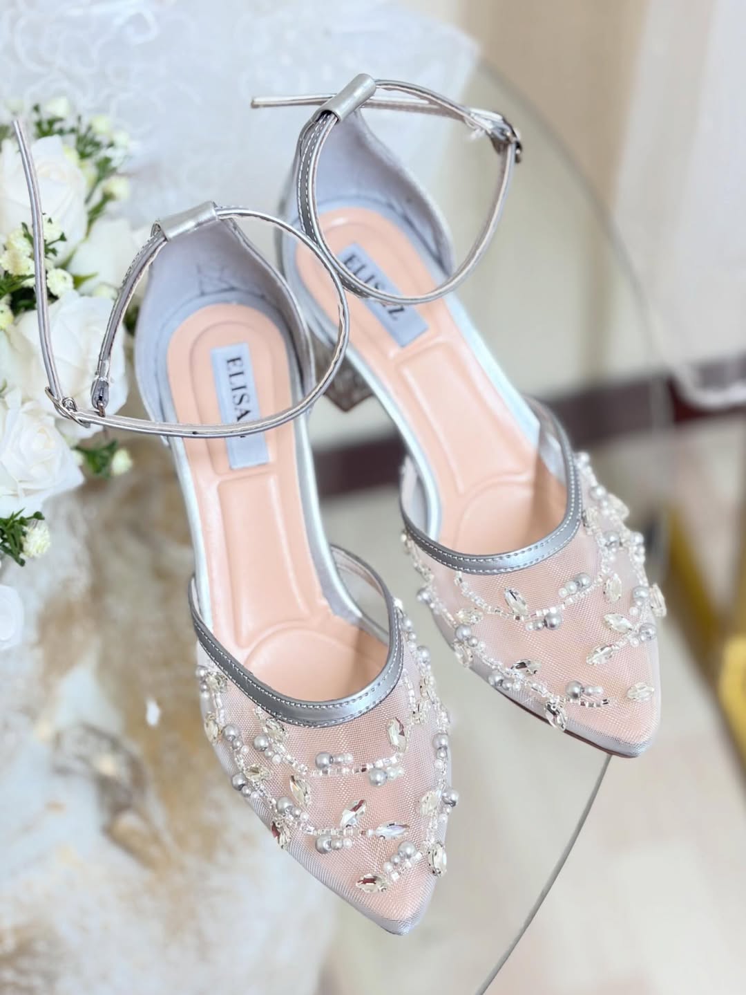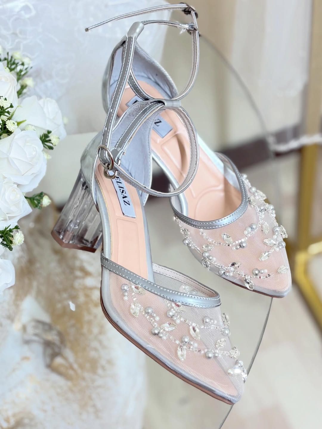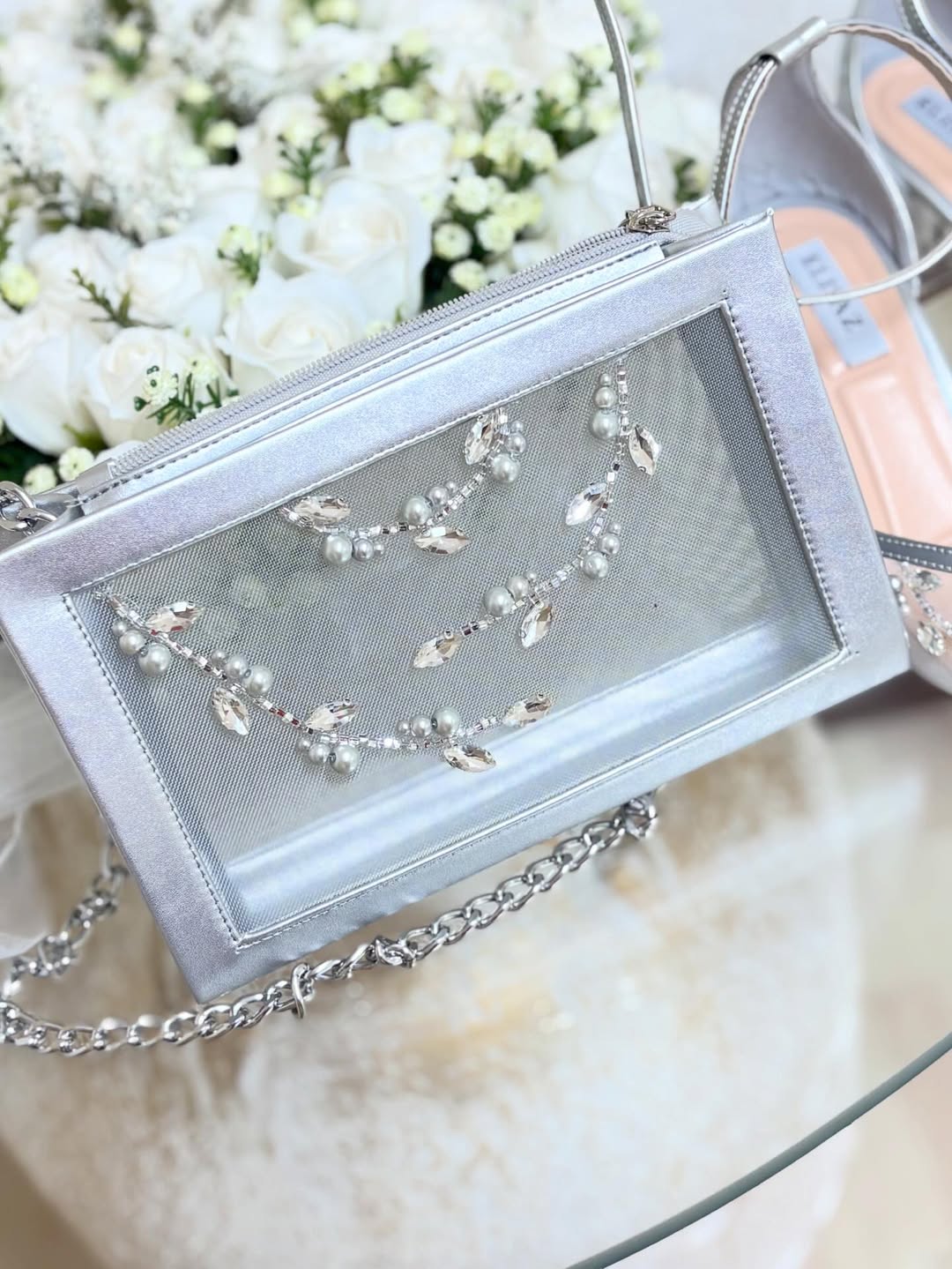 ست کیف و کفش نقره‌ای